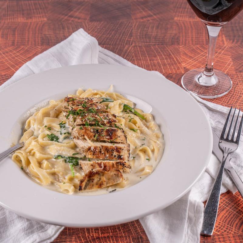 You may feast on a hearty plate of homemade Ravioli or even a gourmet Rib Eye, wood-grilled and topped with maître d butter and served with a Twice Baked Potato and Sautéed Vegetables.